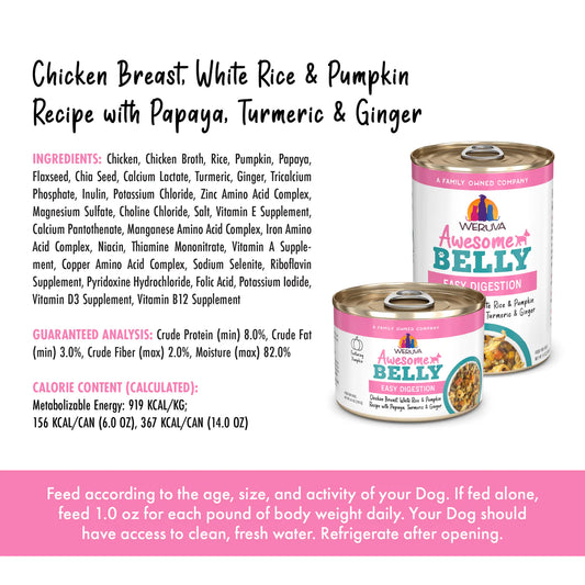 Weruva Awesome Belly Chicken, Rice & Pumpkin Canned Dog Food for Easy Digestion 6oz