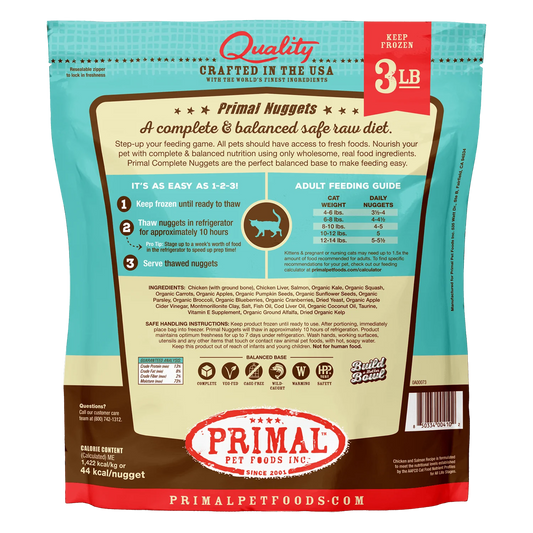 Primal Frozen Raw Nuggets Cat Food Chicken & Salmon Recipe 3lb
