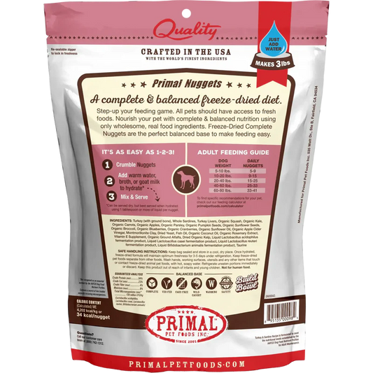Primal Freeze Dried Raw Dog Food Turkey & Sardine Recipe