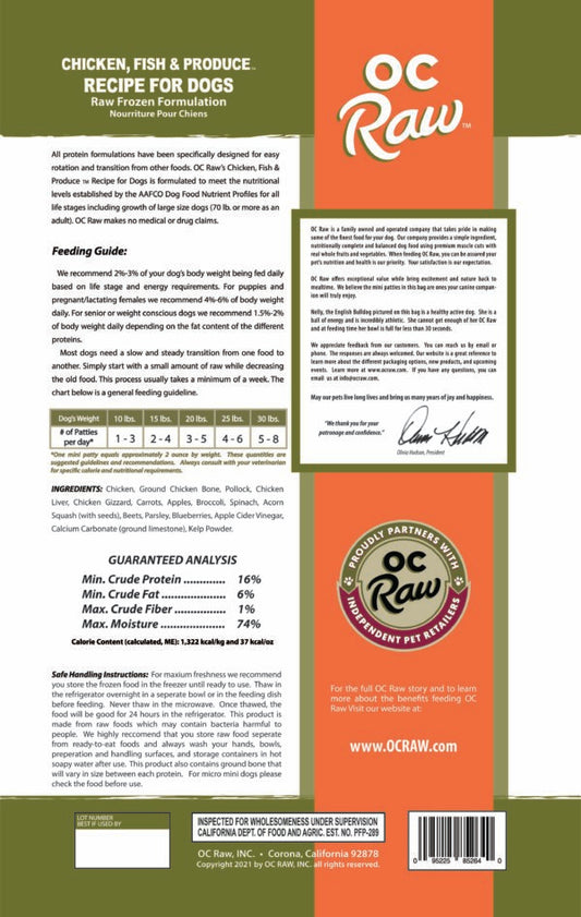 OC Raw Frozen Raw Dog Food Chicken & Fish Patties 6lb