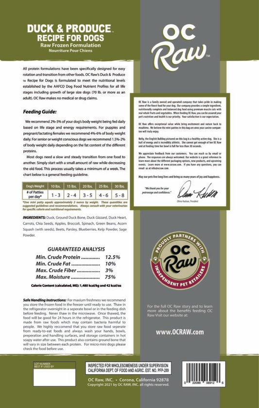 OC Raw Frozen Duck & Produce Mini Patties 4lb