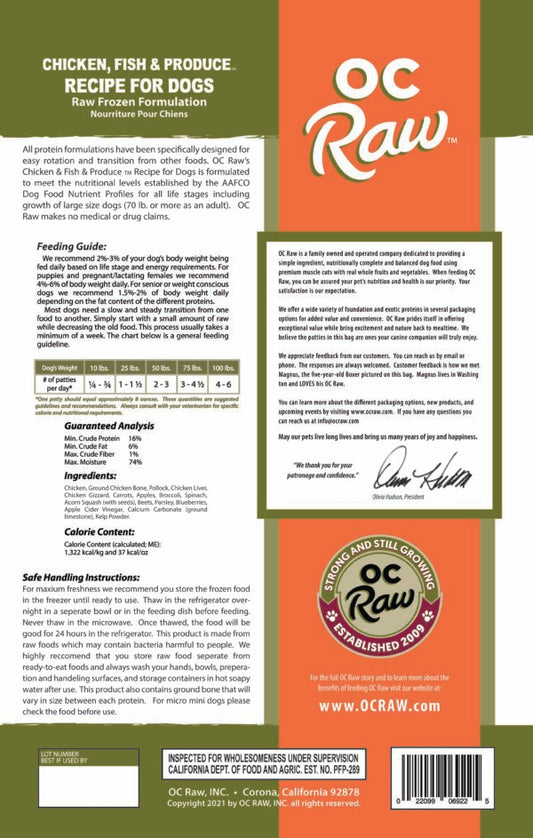 OC Raw Frozen Raw Dog Food Chicken & Fish Bulk 18lb