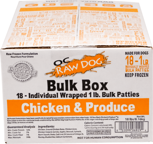 OC Raw Frozen Raw Dog Food Chicken Bulk 18lb
