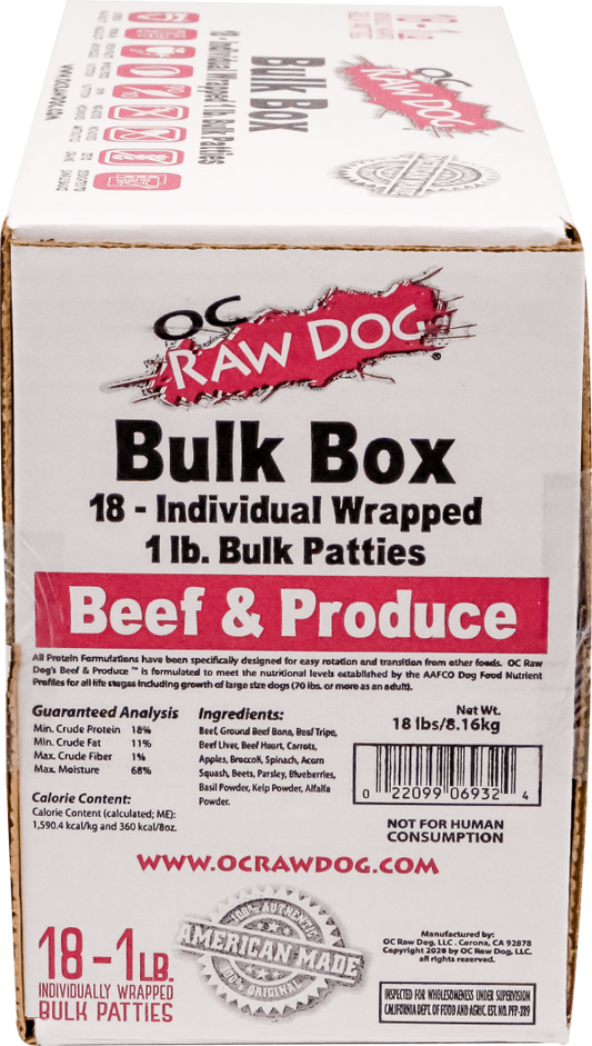 OC Raw Frozen Raw Dog Food Beef & Produce Bulk 18lb