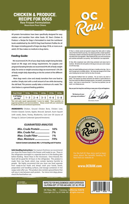 OC Raw Dog Frozen Mini Patties Chicken & Produce 4lb