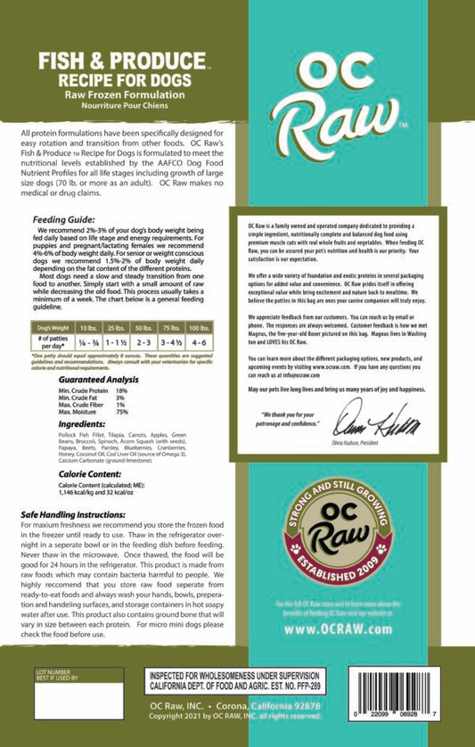 OC Raw Frozen Raw Dog Food Fish & Produce 18lb
