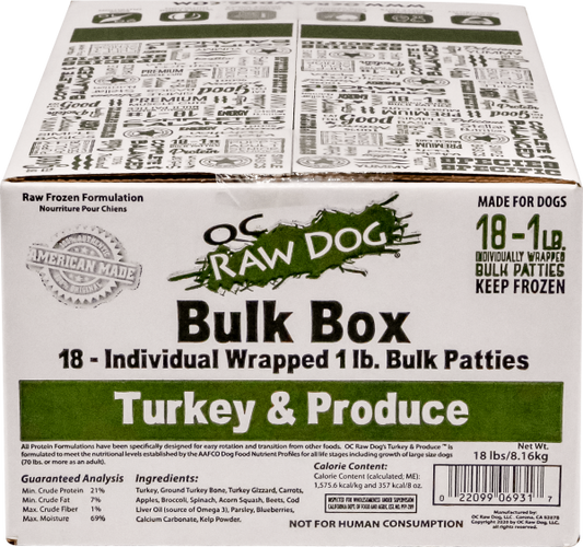 Oc Raw Frozen Raw Dog Food Turkey Bulk Box 18lb