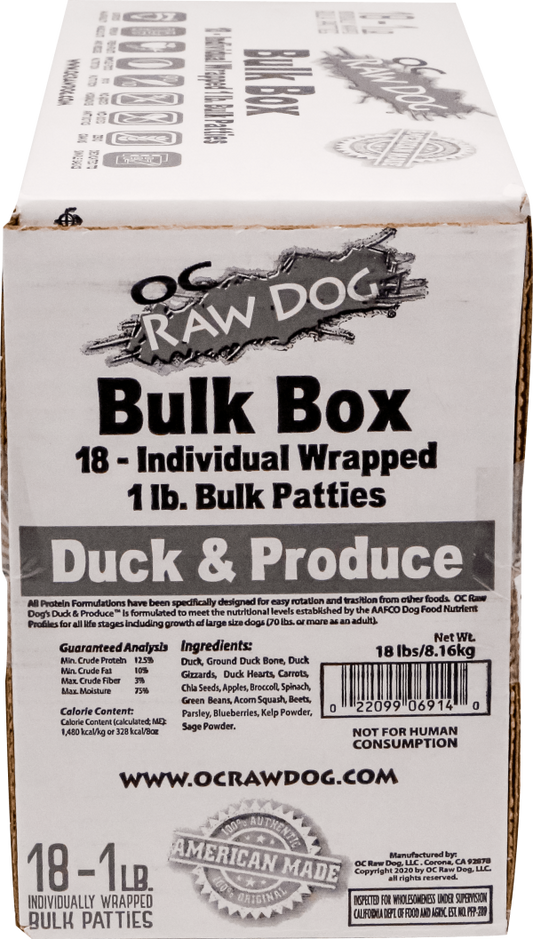 OC Raw Frozen Raw Dog Food Duck & Produce Bulk 18lb