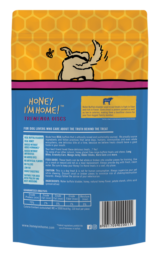 Honey I'm Home Honey Coated Buffalo Treats Tremenda Discs 3pk