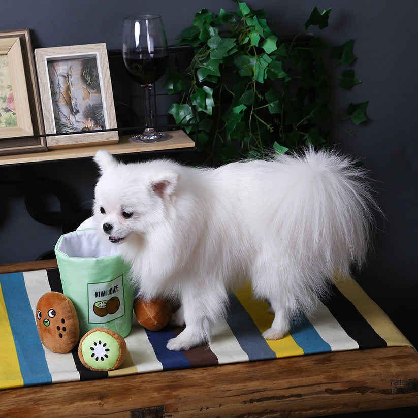 Beat the summers with HugSmart fresh kiwi juice toy. Featuring crinkles and squeakers to amuse your 4-legged friend, the 3-in-1 kiwi juice has an open lid for hiding treats. Perfect interactive toy for dog who loves playing hide-and-seek.