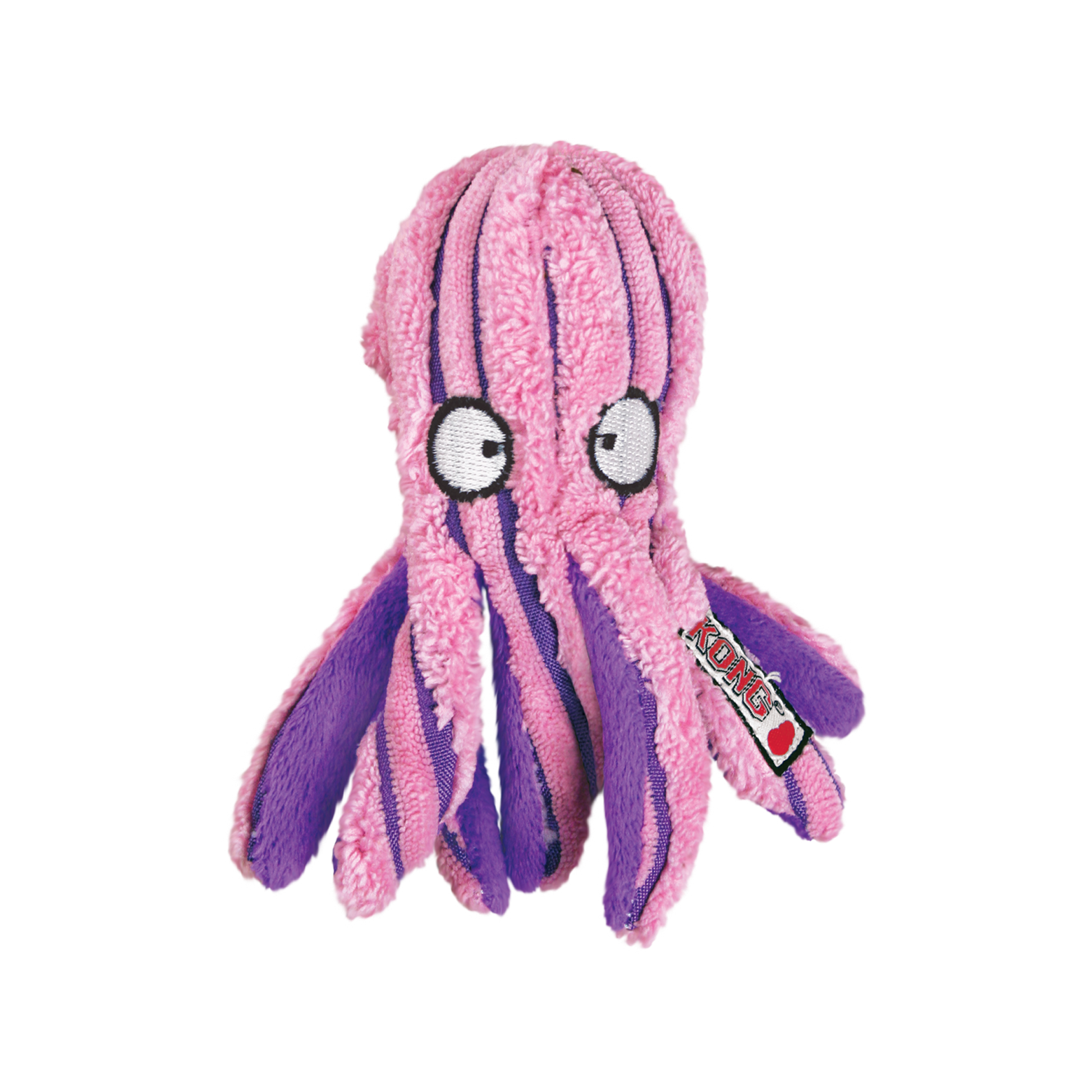 The blend of textures on the KONG CuteSeas toys tempt cats to play. The soft plush body invites snuggling and cuddling. A generous portion of KONG Premium North American catnip helps entice play and offers and added reward.