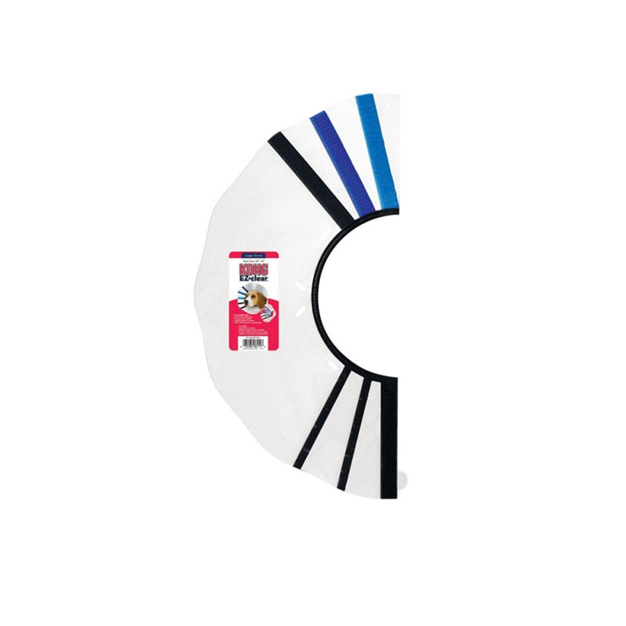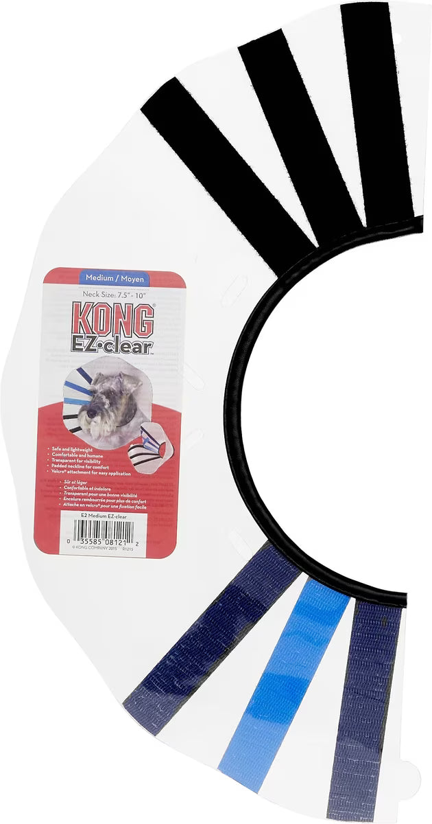 The KONG EZ Clear Collar promotes healing by preventing your dog from touching healing wounds. The unique, clear design helps make healing from surgery or injuries less scary for your dog by allowing him to see as normal—without a bulky ring standing in his way. Plus, the hook and loop straps make this collar easy for you to take on and off, while also letting you adjust for a snug, comfy fit. Your best bud can heal comfortably, and you'll know he's healing safely and comfortably with KONG.