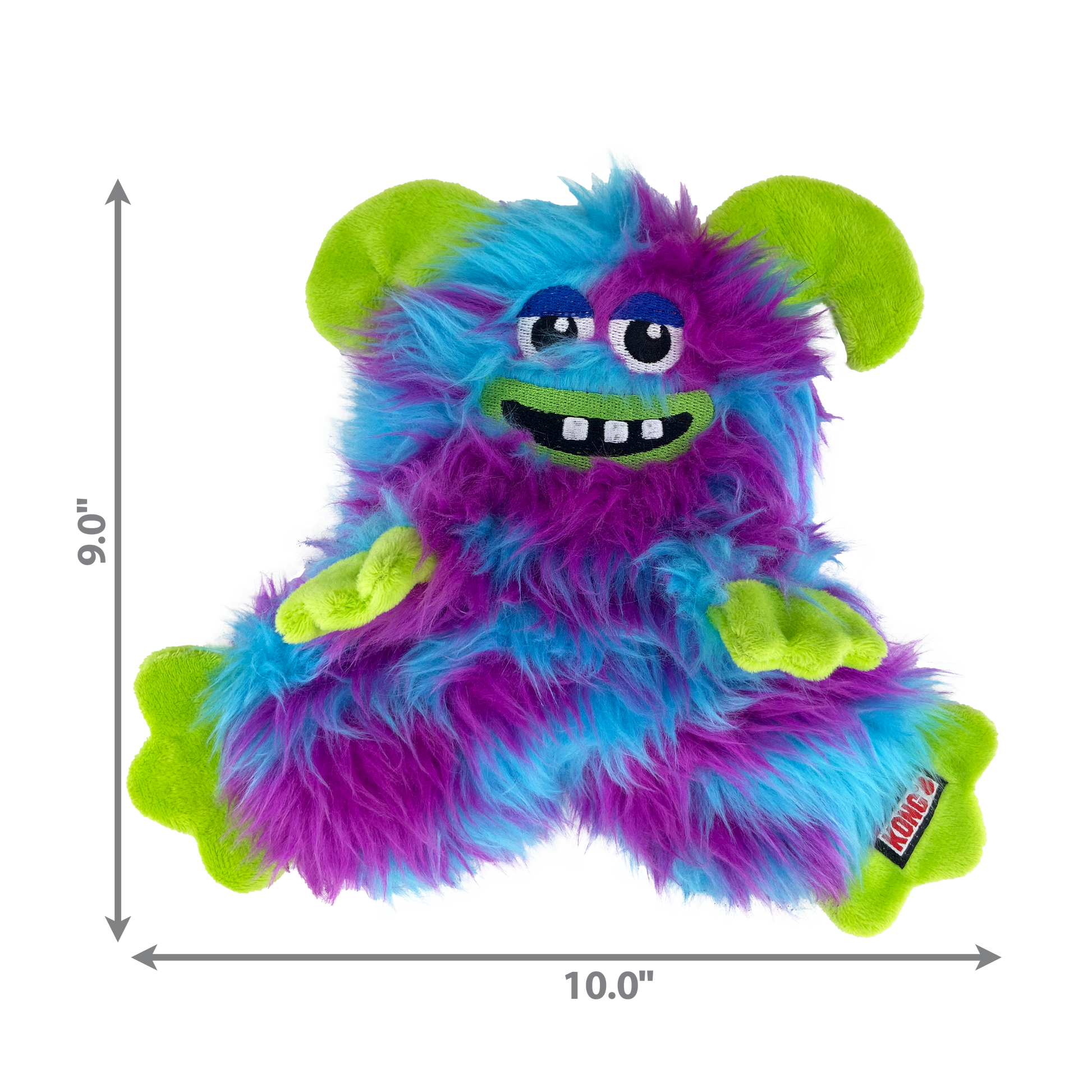 KONG Frizzles’ lush, long fur makes these friendly fiends irresistible to curious pups itching for indoor adventures—and unbelievably soft snuggles. These shaggy sidekicks satisfy fetching and (gentle) chewing instincts. Not-so-scary squeaks and crinkles keep the action going. All sized dogs can grab the flat bodies.