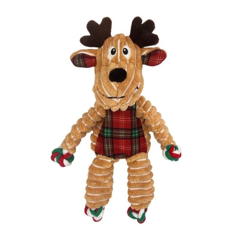 The internal knotted rope skeleton helps this reindeer last way past the holidays for instinct-satisfying fun with a long, floppy shape, squeakers to prolong play and soft plush for snuggling between festive romps.