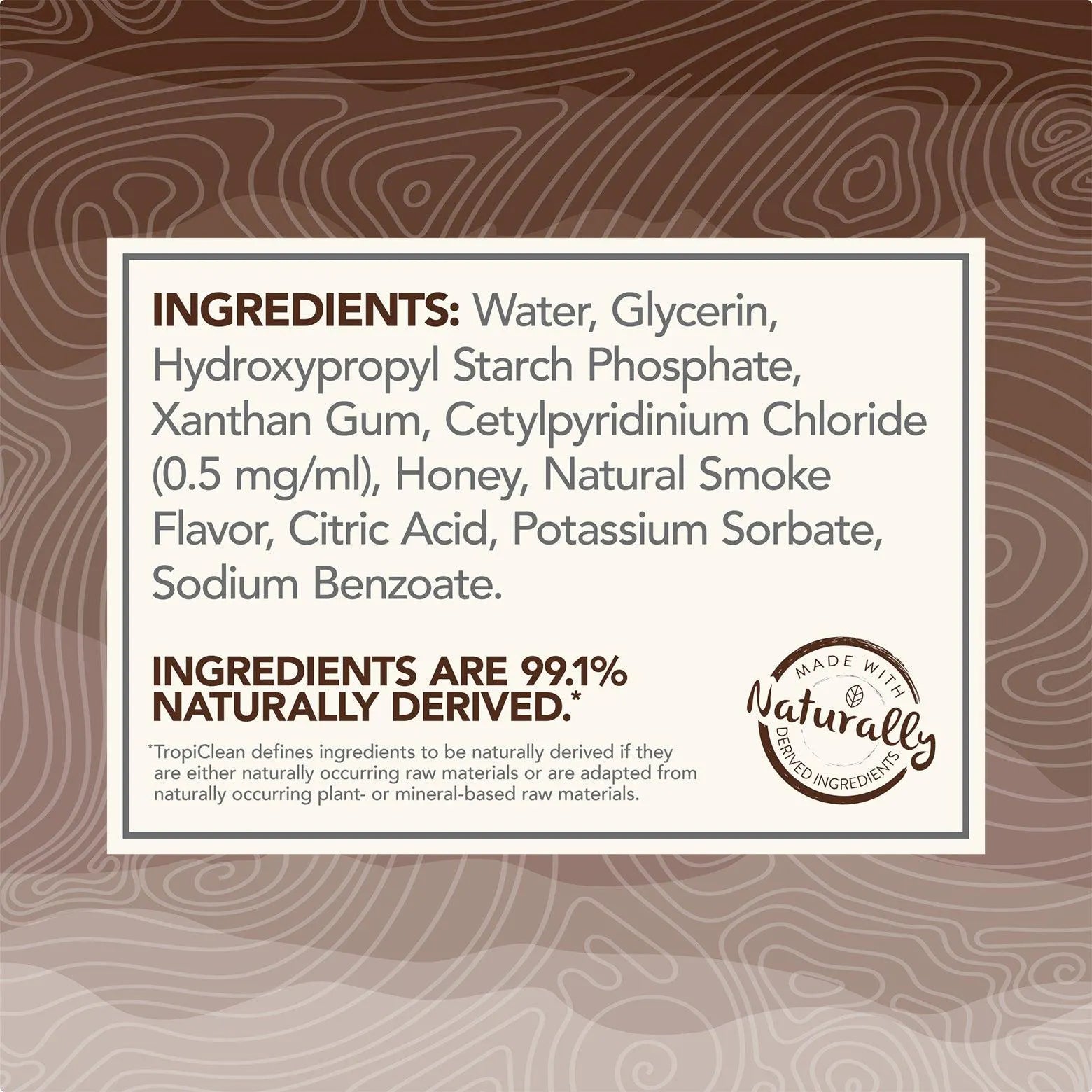 Water, Glycerin, Hydroxypropyl Starch Phosphate, Xanthan Gum, Cetylpyridinium Chloride (0.5 mg/ml), Honey, Natural Smoke Flavor, Citric Acid, Potassium Sorbate, Sodium Benzoate.
