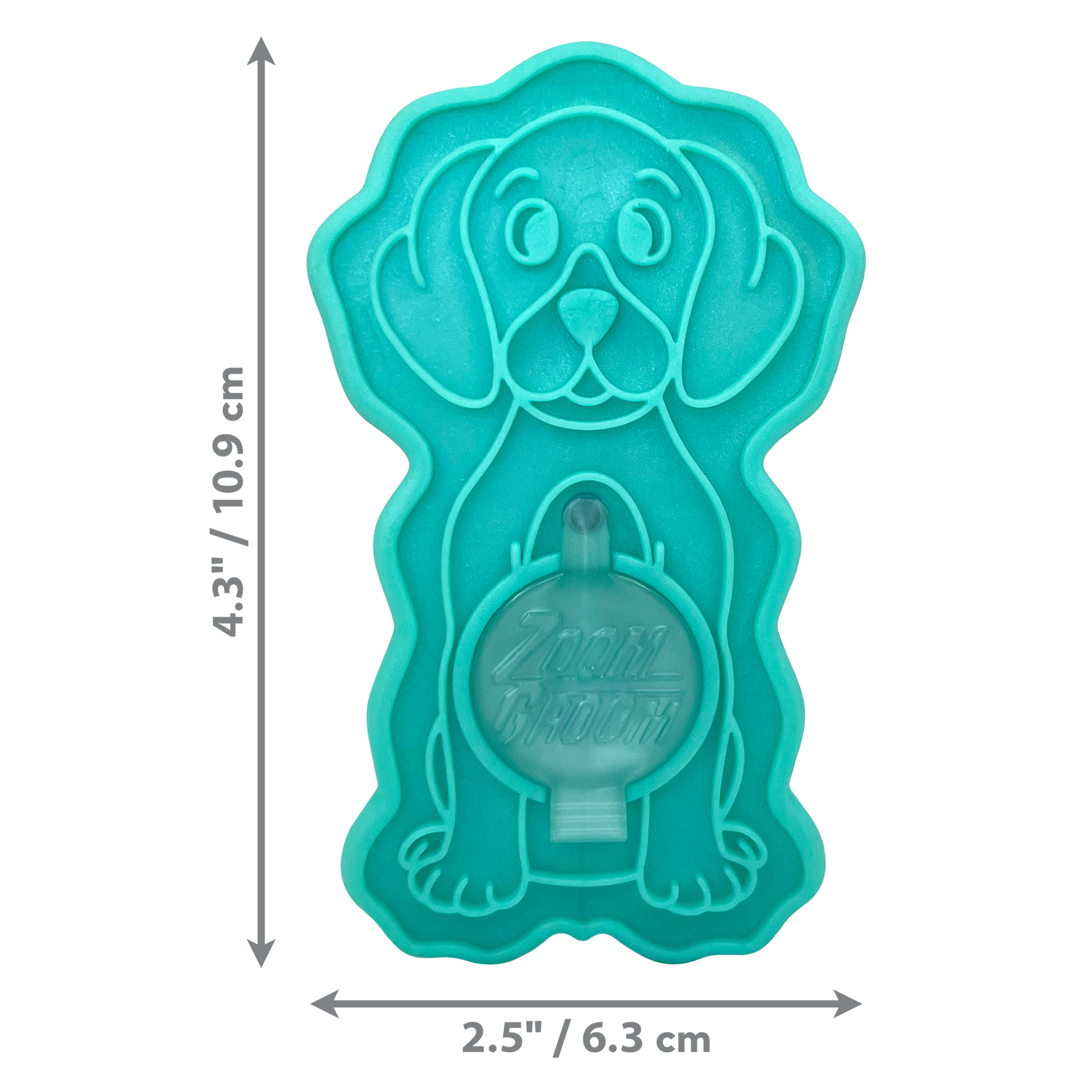 KONG® ZoomGroom® Bubbles is the extra hand you need to help get your dog clean! This genius soap-dispensing version of the original KONG ZoomGroom brush features the same ¾-inch rubber fingers that massage your dog’s skin and remove dirt & shedding hair, with an additional compartment that distributes shampoo while you are grooming. Eliminate fumbling with the shampoo bottle and make bath time more relaxing for you and your best friend. Use this brush between bath times without shampoo for dry grooming.