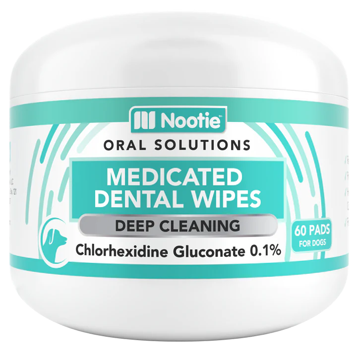 Nootie Medicated Antimicrobial Dental Wipes for dogs helps remove and prevent harmful plaque, tartar, and bacteria for optimal oral health and hygiene. Formulated to work with your dog’s saliva, which activates the active ingredient, to clean your dog’s teeth and gums. Best if used once daily to maintain good oral health.