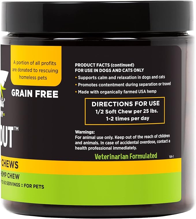 Perfect for cats and dogs of all sizes who may be exhibiting nervousness, hyperactivity, or discontentment. May be used as a situational supplement for your best friend who is experiencing normal stress due to visiting a vet, separation from their pet parents, travel plans, or environmental stress (fireworks, thunderstorms, etc.). Keep your pet calm and relaxed with a dose of Chill + Out ‘Calming” Chews!