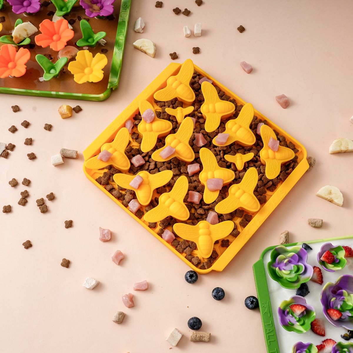 Taste the fun with Tall Tails' Foraging Mat for Dogs. A silicone slow feeder for dogs, this foraging mat encourages slower eating for better digestion. It's easy to use with your dog's favorite foods, like kibble, wet foods, spreadables, and treats. They even included a skid resistant bottom for active eaters. For even more fun, we've made each mat with overlapping edges to join the entire collection together!