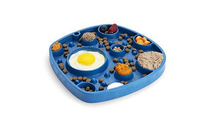 Feasting The Way Nature Intended. West Paw's Feast Mat is an All-in-One, innovative enrichment mat that brings a slow feeder and lick mat together to provide an engaging variety between feeding and treating. The Slow Feeder side features an enticing design with deep grooves that allows the dog to forage and explore for food, while the Lick Mat side is designed for treating and soothing licking. The Feast Mat comes in two designs for extra creativity and engagement.