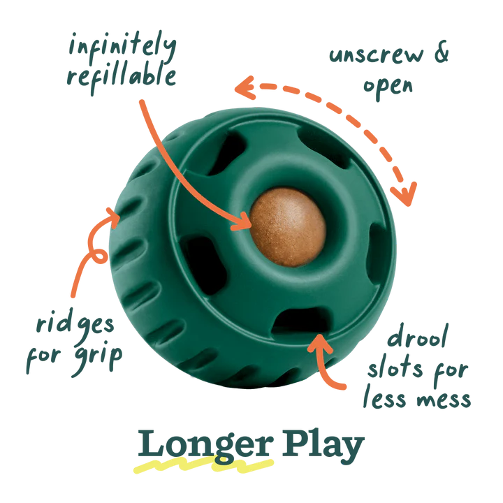Long-lasting quiet in a beautifully designed dog toy. Easy to clean and fill with DIY or pre-made treats.